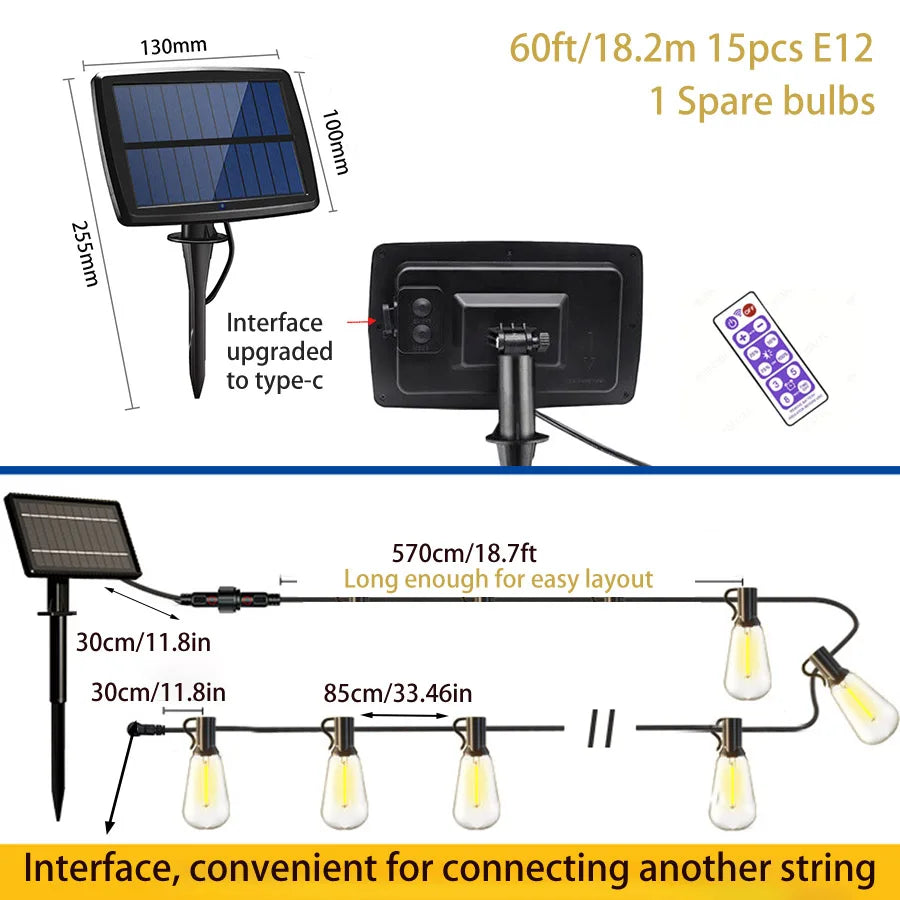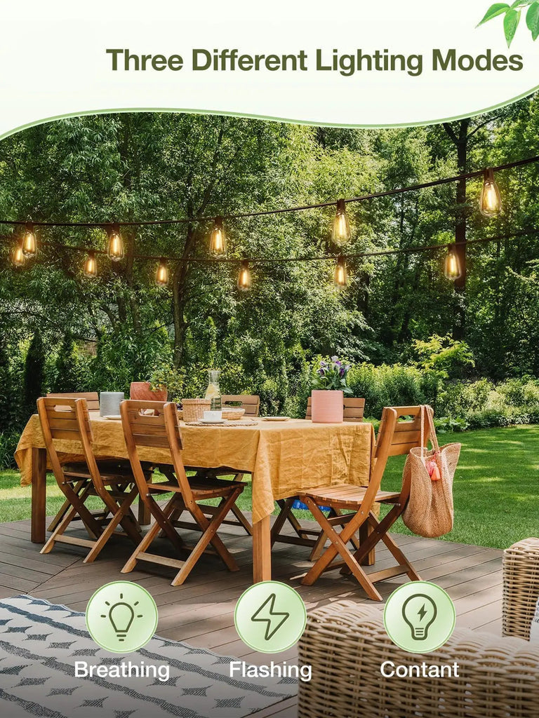 60/100FT Solar String Lights IP44 Waterproof, 15+1/30+2 LED Shatterproof Bulbs 4 Light Modes, Camping Backyard Garden Holiday