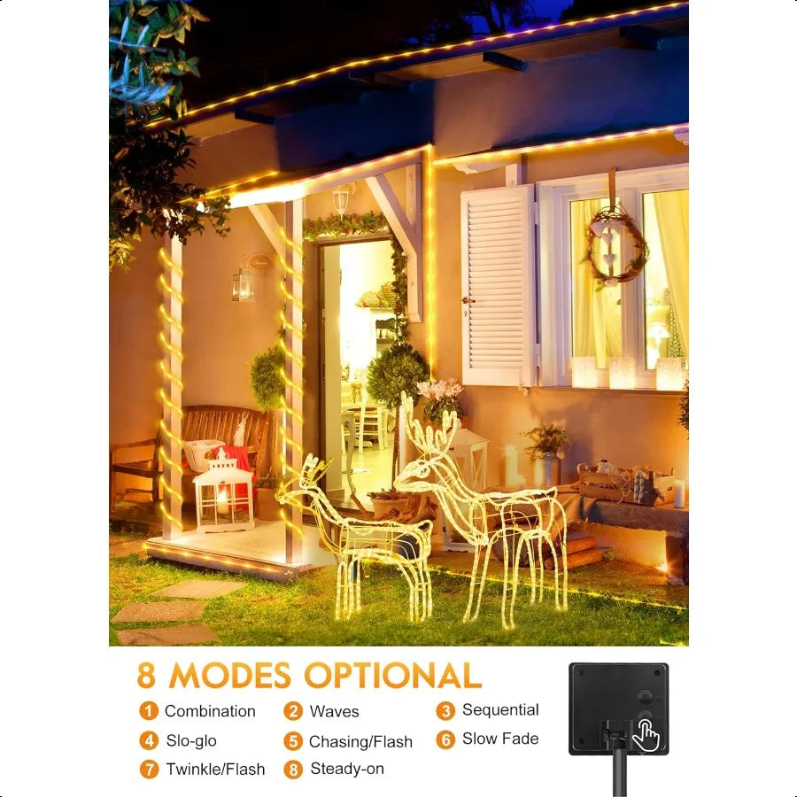 Solar Rope Lights 39FT 100LED Outdoor Solar String Lights IP65 Waterproof Solar Powered Fairy Lights with 8 Lighting Modes for