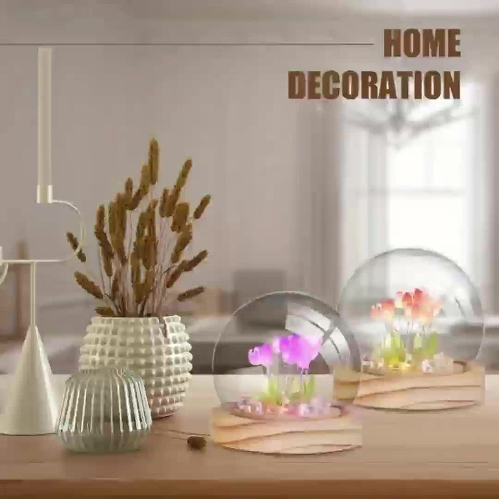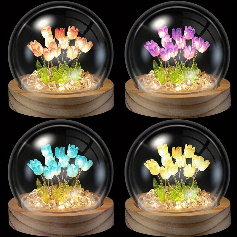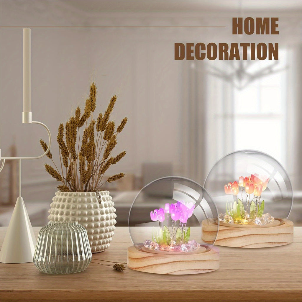 1pc Handcrafted Tulip Night Lamp - Glass Dome, Cute, Soft Glow, Bedroom Table Lamp, Home Room Decor, Coffee Table Accent, Courtyard Garden Lighting, Unique Gift Idea
