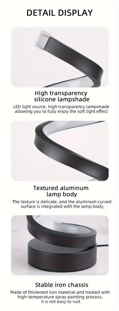 1pc Unique Spiral Design Table Lamp - Soft Night Light, Original Art Piece, Perfect Christmas Gift, Surprise Yourself with Its Modern Style and Ambiance