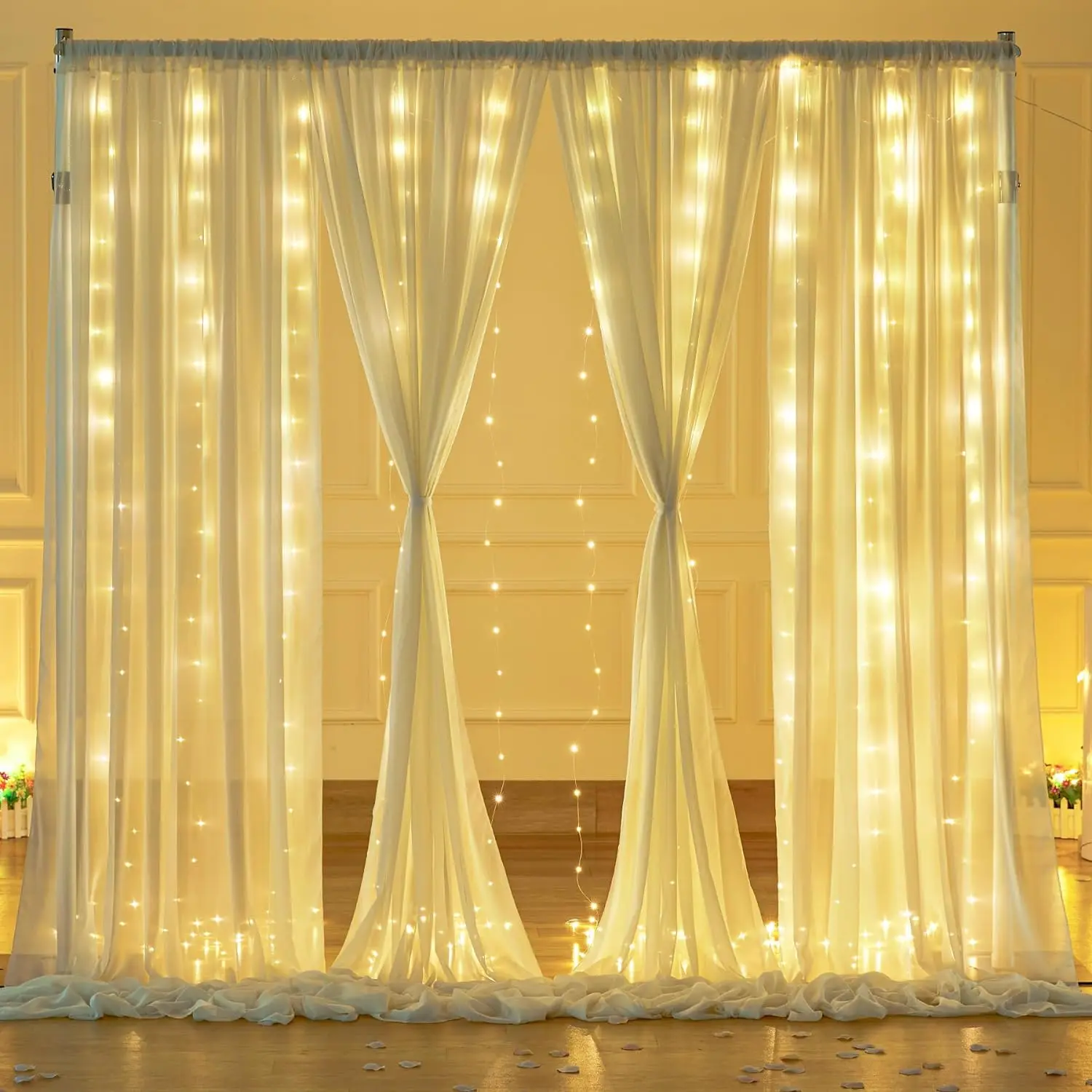 窗帘灯用途广泛:非常适合婚礼、派对、舞台、仪式、招待会、新娘送礼会、婴儿送礼会、婚礼拱门、生日、窗帘、产品照片拍摄、照相亭、肖像拍摄、摄影工作室、日常使用、房间装饰、糖果自助餐、甜点桌背景和其他特殊装饰。