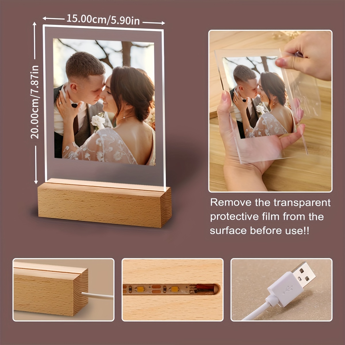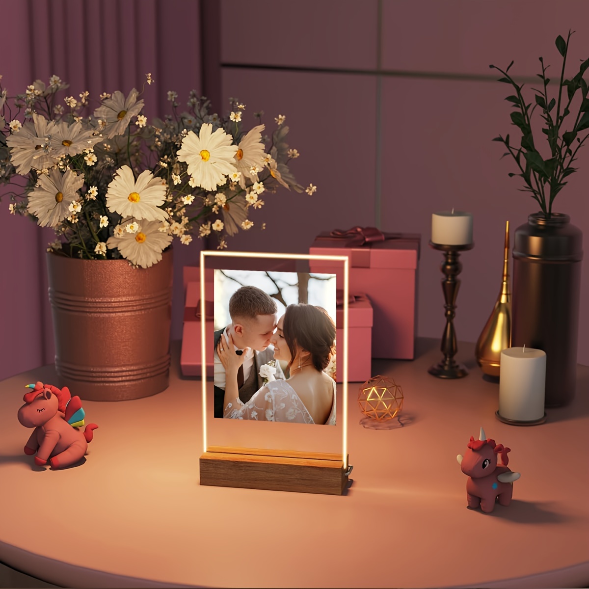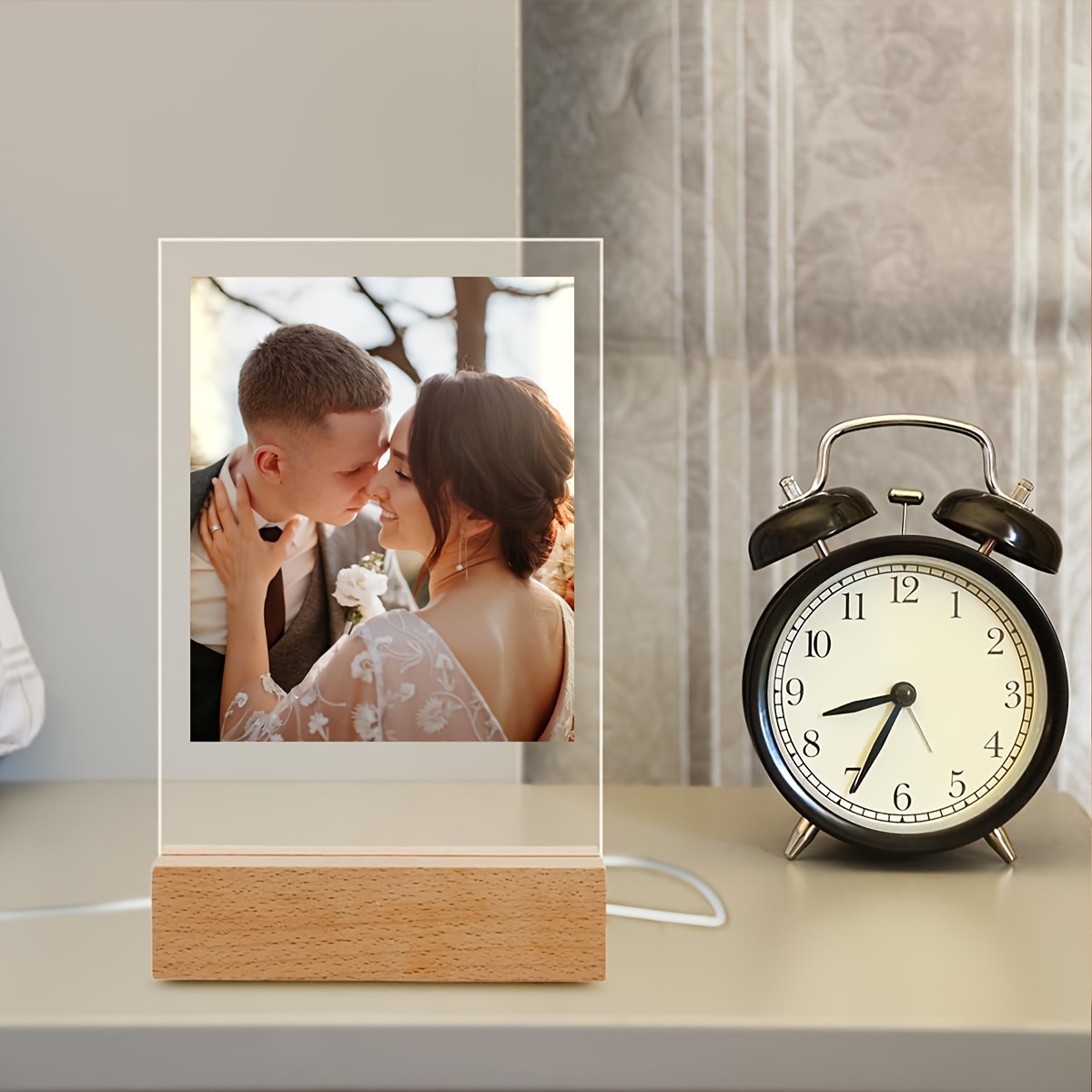 [Customised] 1pc Personalized Custom Photo LED Light Light Up Sign Acrylic Plaque Wooden Stand Night Light Table Lamp For Parents Boys Girls Birthday Anniversary Wedding Gift Customized Birthday Gift