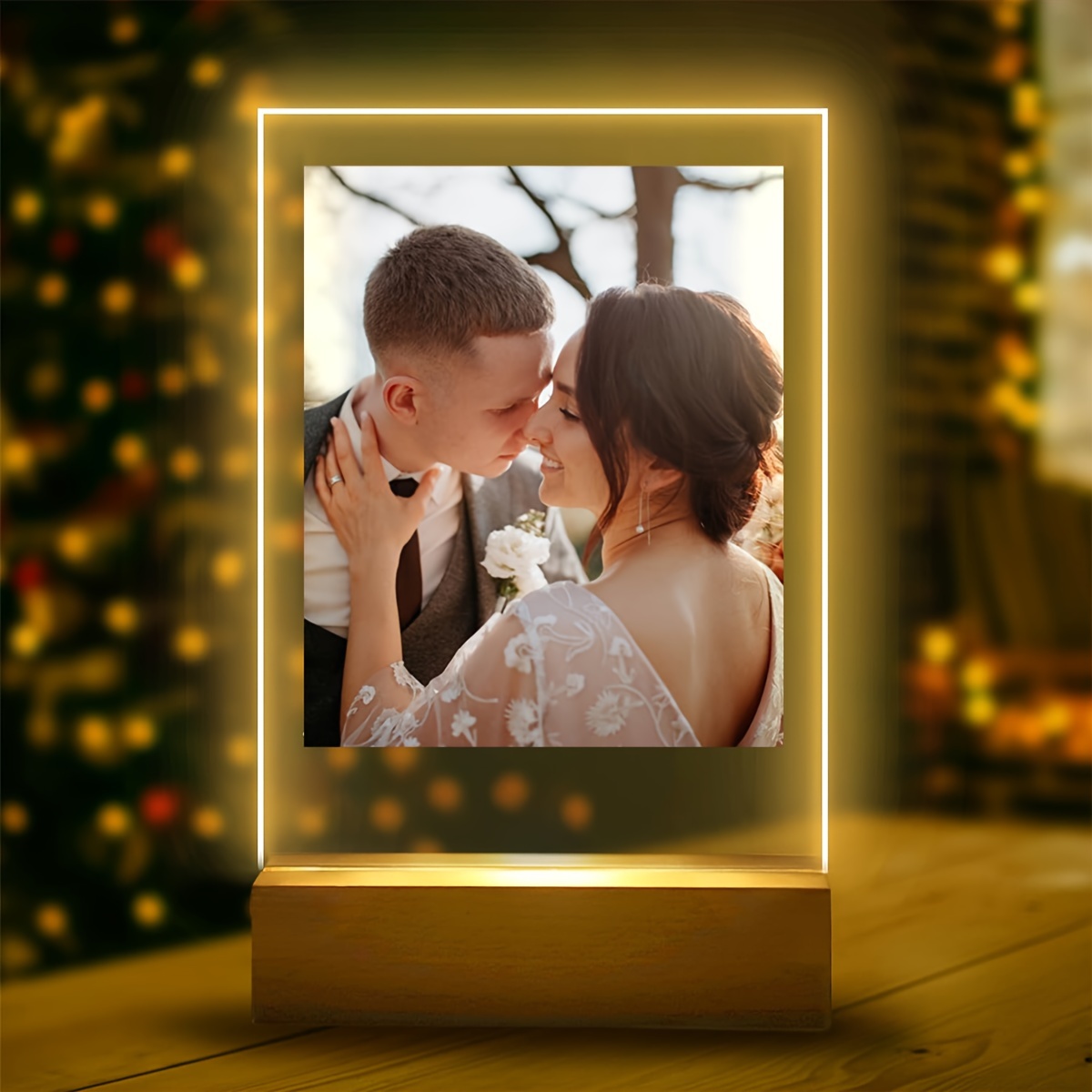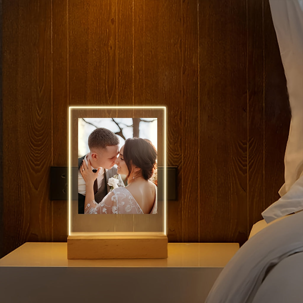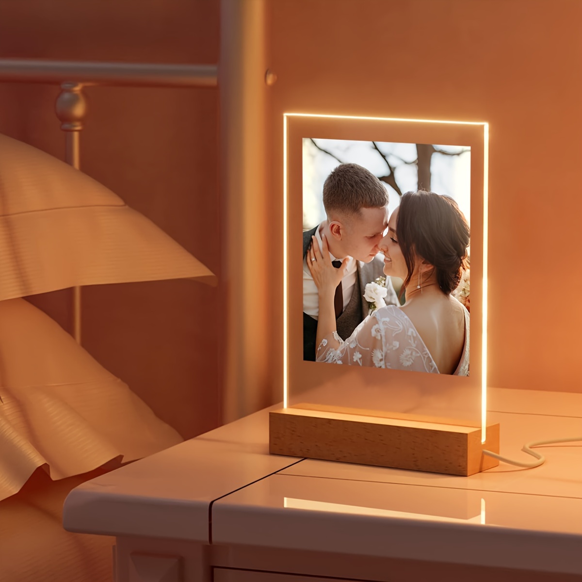 [Customised] 1pc Personalized Custom Photo LED Light Light Up Sign Acrylic Plaque Wooden Stand Night Light Table Lamp For Parents Boys Girls Birthday Anniversary Wedding Gift Customized Birthday Gift