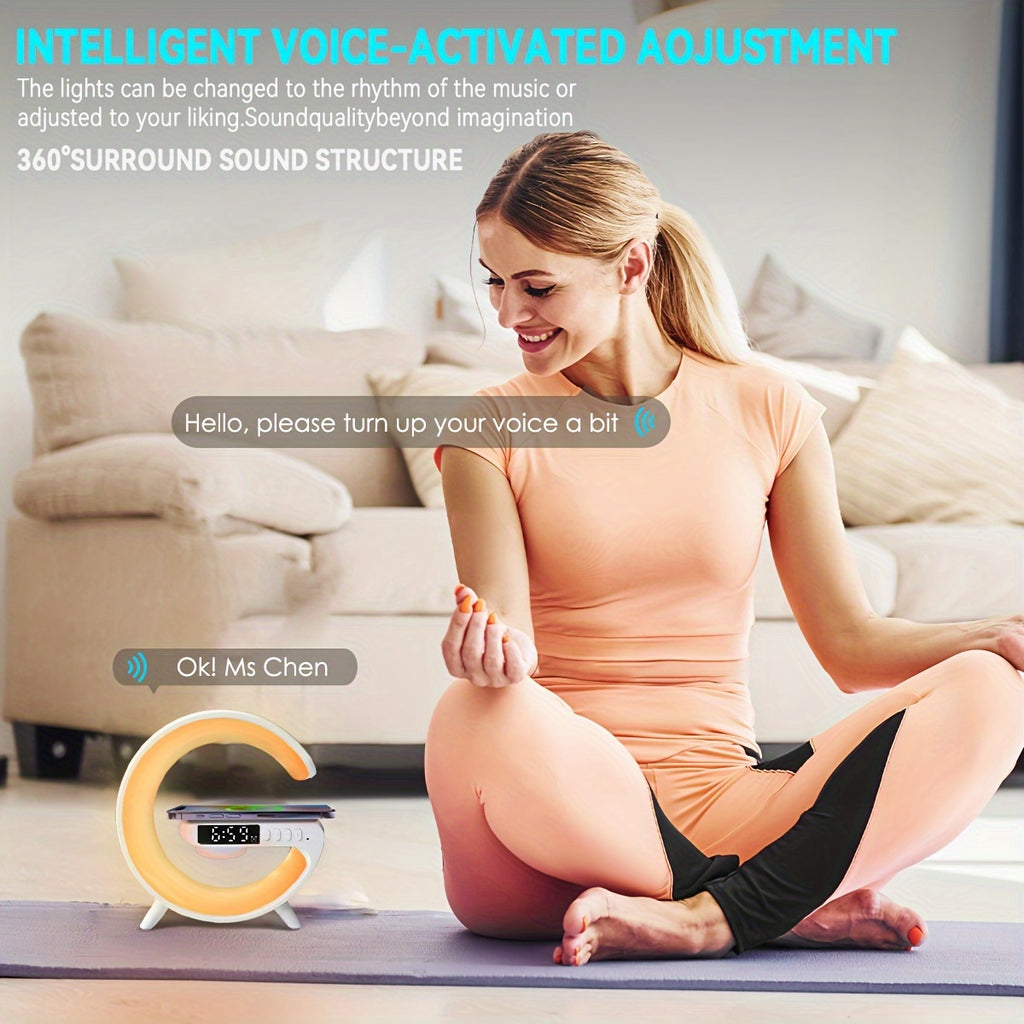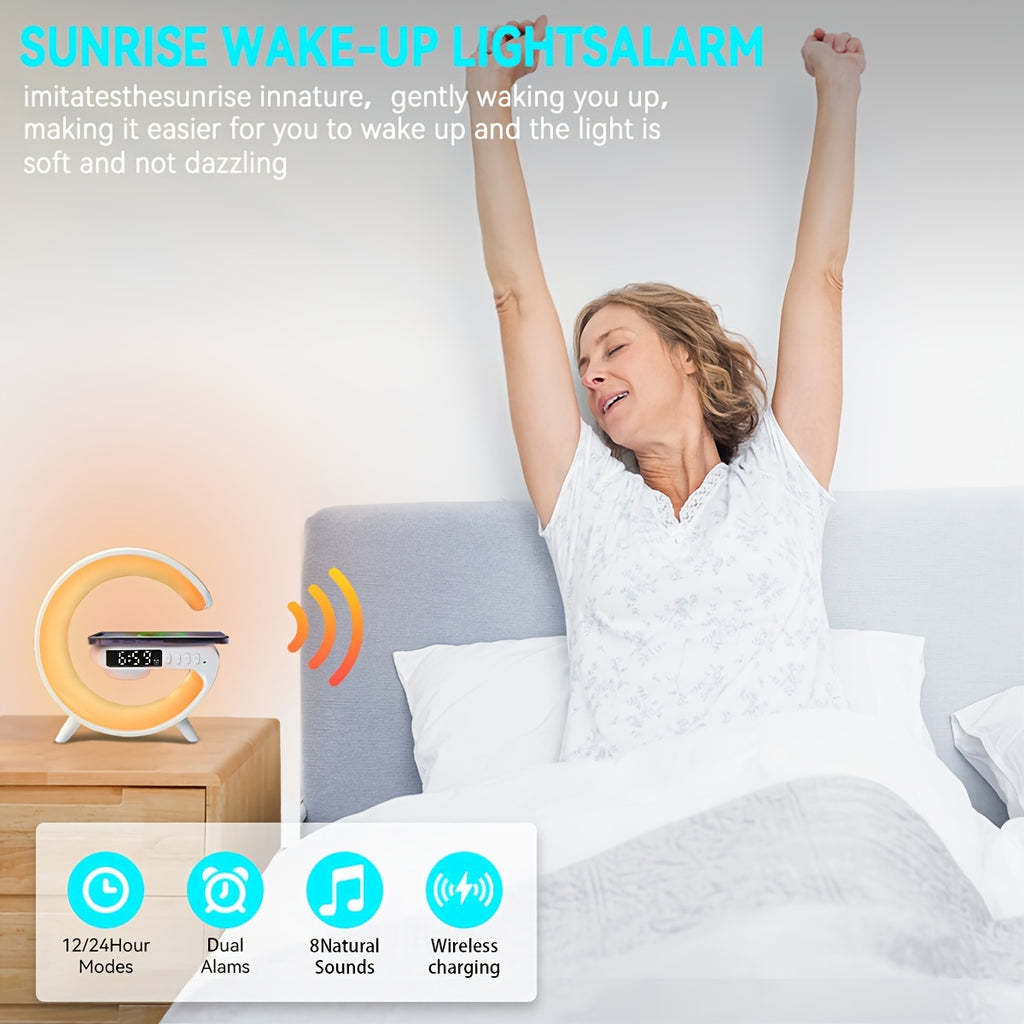 JELLOO 15w Wireless Speakers With Wireless Fast Charging, Rhythm RGB Light, Bar Smart Light, Sunrise Alarm Clock, Wake Up Light For Bedrooms, Dimmable Table Lamp, 10 Types Light Effects.